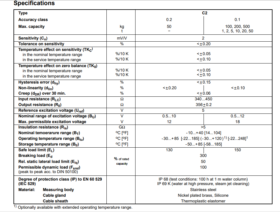 德國HBM稱重傳感器1- C2/10T型號技術(shù)參數(shù)選型資料,以及