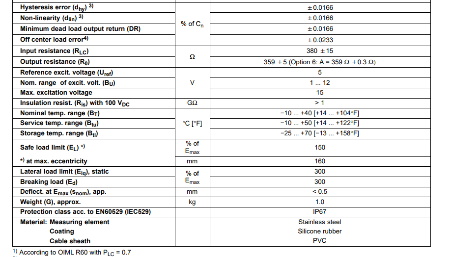 L00廣州南創(chuàng)電子科技有限公司德國HBM稱重傳感器1-PW15AC3MR/100kg-1產(chǎn)品技術(shù)參數(shù):L00廣州南創(chuàng)電子科技有限公司