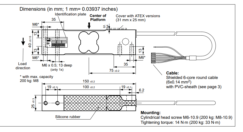 L00廣州南創(chuàng)電子科技有限公司 L00廣州南創(chuàng)電子科技有限公司德國HBM稱重傳感器PW15AC3MR 150kg尺寸圖:L00廣州南創(chuàng)電子科技有限公司