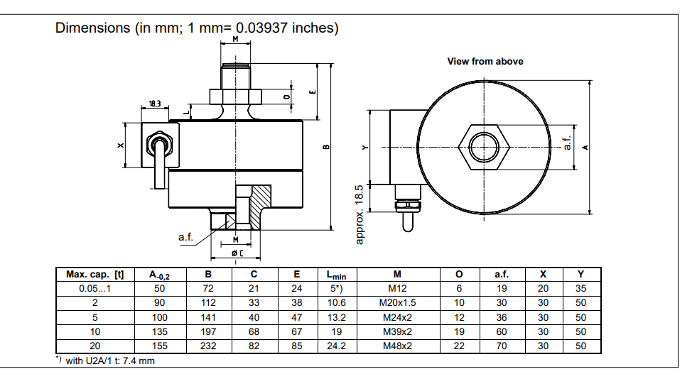 6ze廣州南創(chuàng)電子科技有限公司德國HBM稱重傳感器U2AD1/5t產品尺寸圖:6ze廣州南創(chuàng)電子科技有限公司