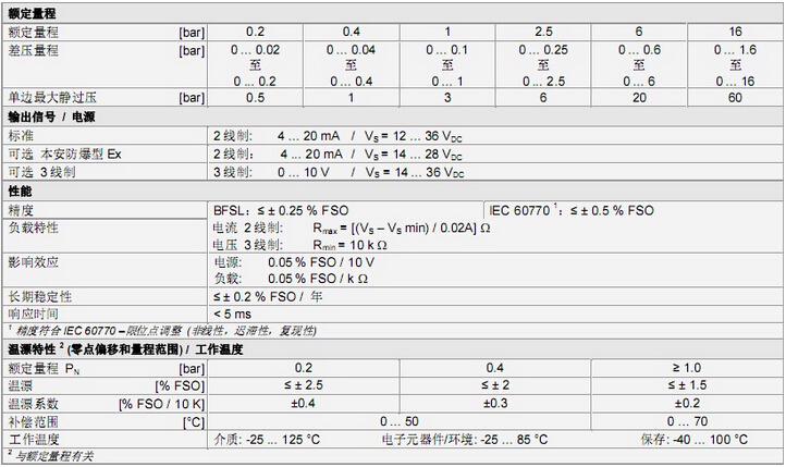 。差壓 0 ... 20 mbar 至 0 ... 16 bar