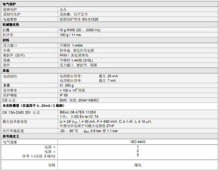 德國(guó)BD SENSORS DMD 331壓力變送器參數(shù)圖: