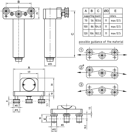 3個(gè)帶V型槽的滾珠軸承鋁輥,根部Ø11mm