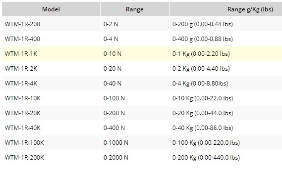 美國CHECKLINE_WTM-1R卷筒張力模塊所有量程型號如下:
