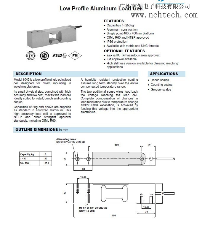 應(yīng)用:Tedea 1042單點式稱重傳感器應(yīng)用在平臺秤,工作臺秤,計數(shù)秤,食品秤。