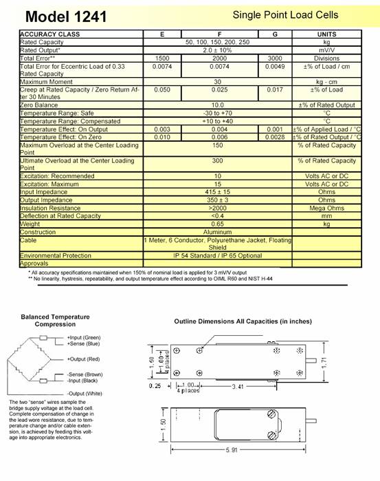美國特迪亞1241-100kg傳感器技術(shù)指標: