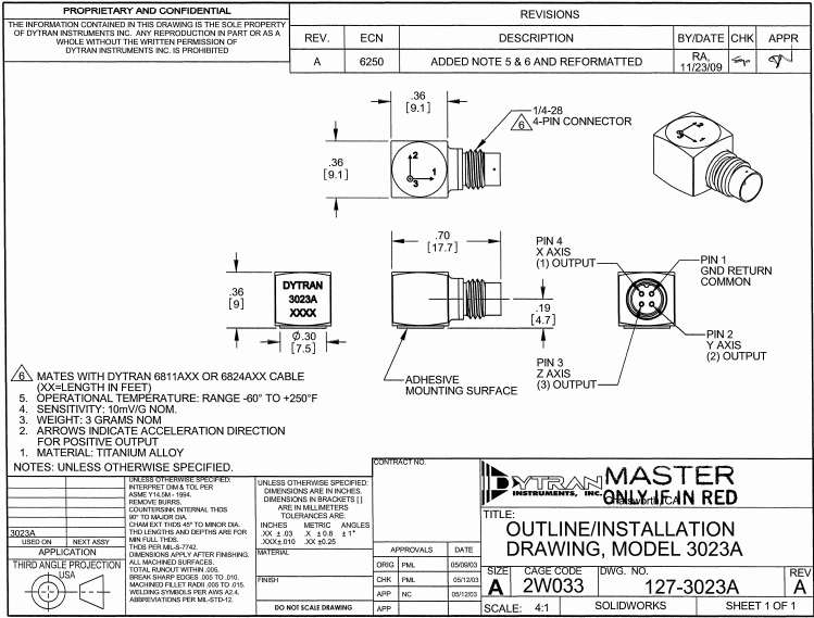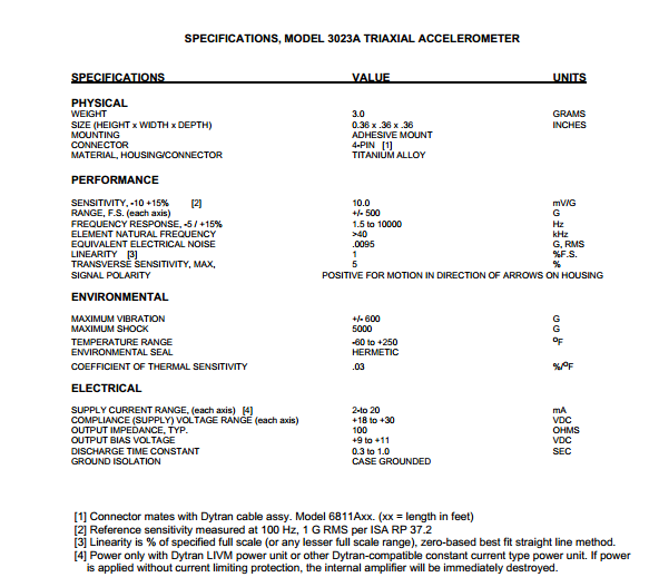 美國Dytran 3023a加速度傳感器技術參數(shù)圖: