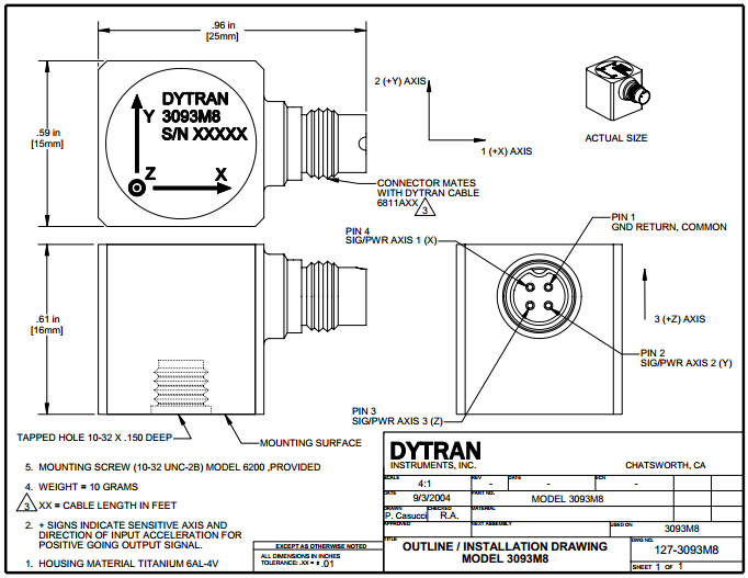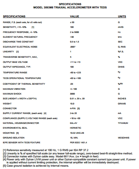 美國Dytran 3093M8加速度傳感器規(guī)范圖: