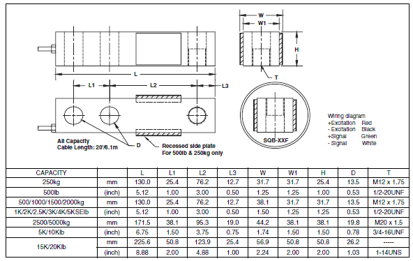 美國(guó)Celtron稱重傳感器SQB-1500KG是一種單端彎曲梁式稱重傳感器,主要用于低平面規(guī)模或小型箱灌,SQB-1500KG傳感器安裝時(shí)需使用適當(dāng)?shù)陌惭b附件,不易受周圍影響,且負(fù)載能力強(qiáng)。SQB和SQB-F單端梁稱重傳感器材料為合金鋼,并用特殊化合物充分壓縮,SQB稱重傳感器有良好的防水防濕功能,美國(guó)Celtron稱重傳感器SQB-1500KG保護(hù)等級(jí)為IP67。Tus廣州南創(chuàng)電子科技有限公司