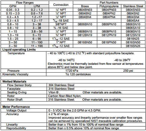 美國Proteus 800系列計量流量開關(guān)的性能和規(guī)格: