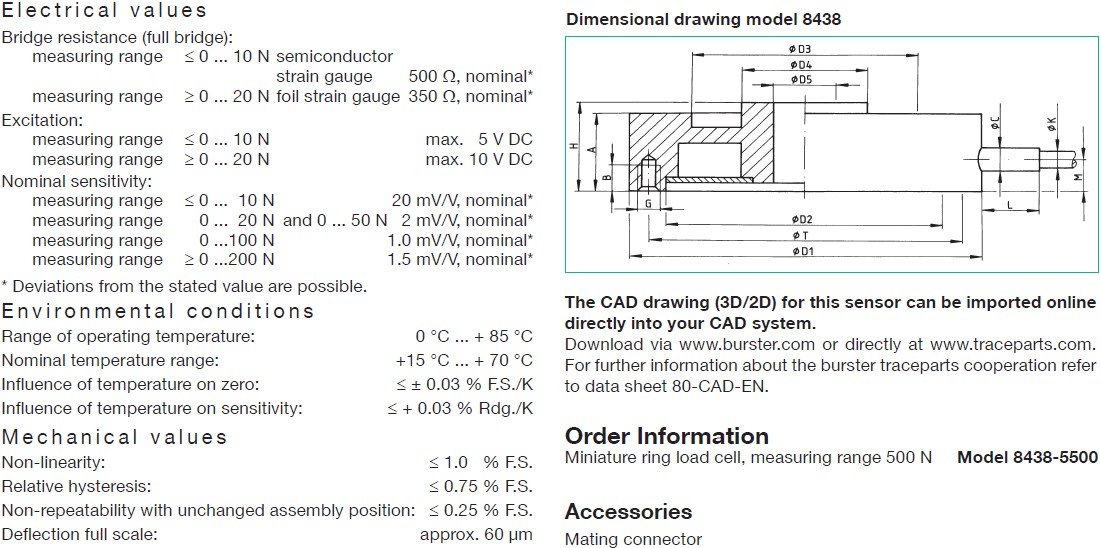 德國Burster 8438-5100微型環(huán)式稱重傳感器訂購信息: