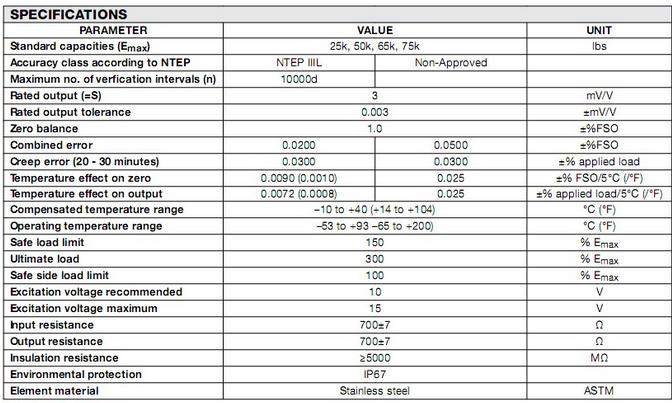 美國Vishay Revere稱重傳感器9803-50klbs特點: