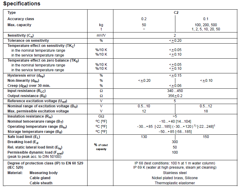C2/200KG傳感器技術參數(shù):