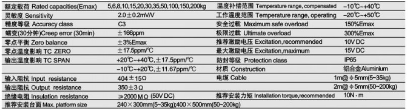 柯力AMI-15KG箱式稱重傳感器技術(shù)參數(shù)