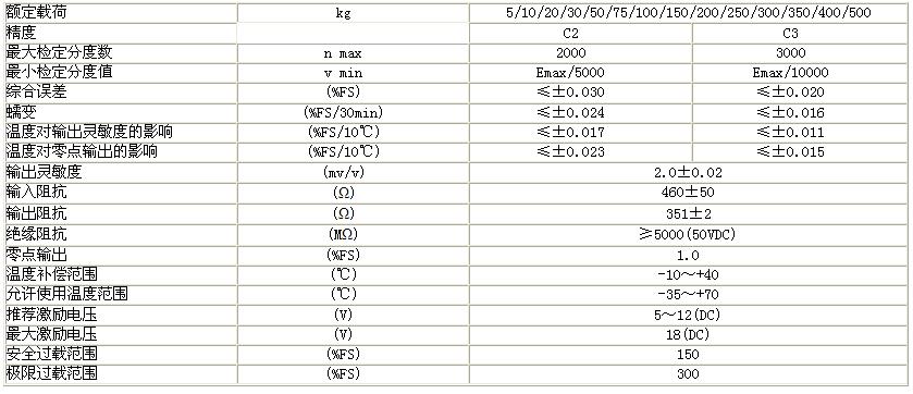BM11-C3-200kg-3B6SC稱重傳感器技術(shù)參數(shù):