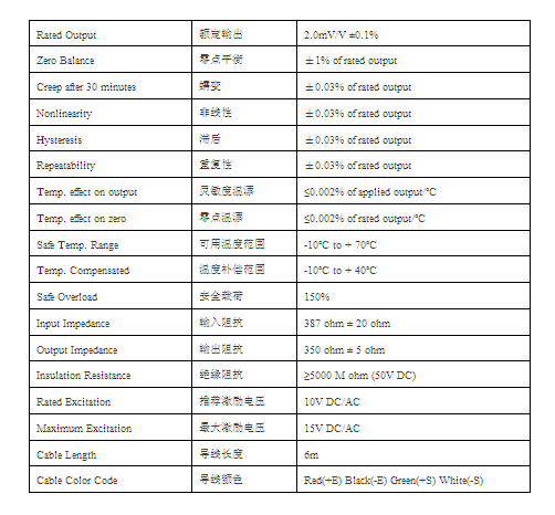 美國Transcell BSS-ESH-2.5T稱重傳感器技術參數(shù):