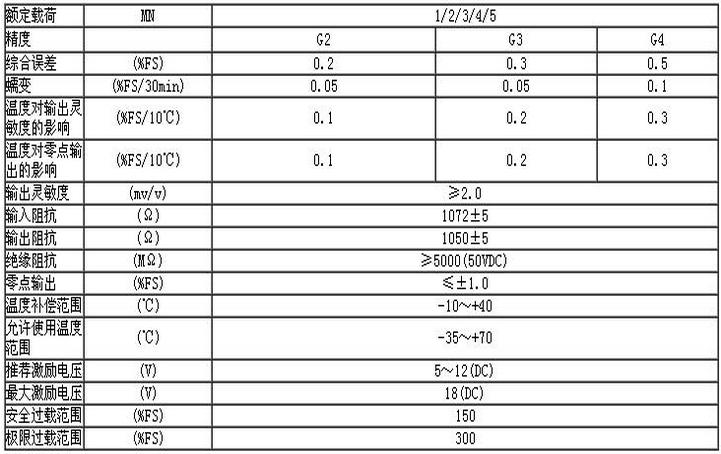 H6F-C3D-50KG稱重傳感器技術(shù)參數(shù):