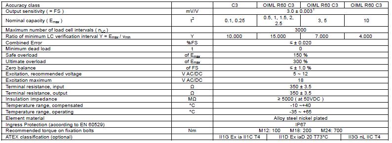 H8C-C3-100kg-4B1稱重傳感器密封等級:IP98