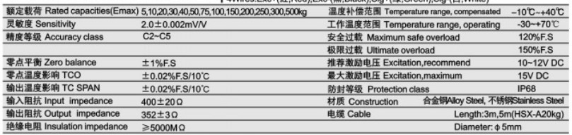 柯力傳感器HSX-SS-200KG模擬輸出電流:25mA ,精度% ? % FS