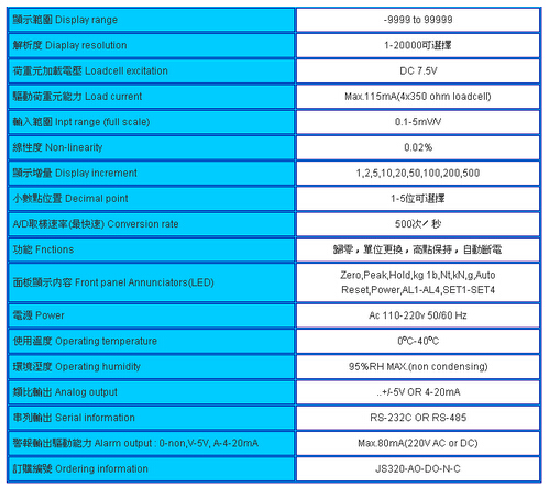 臺(tái)灣JIHSENSE JS-2200稱重顯示控制器參數(shù)圖: