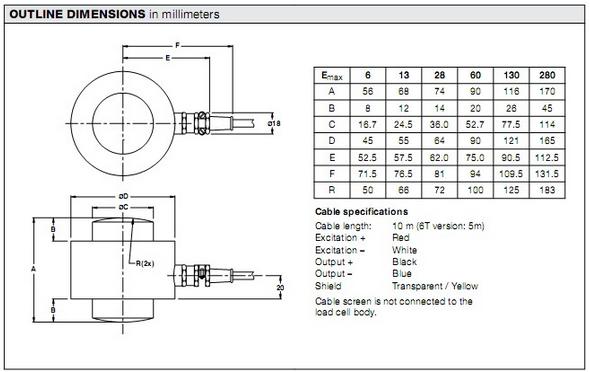 84158: Load Cell, DEB 9323-B10-75k 75000lb 30ft RTI 3mv/v 700 Ohm WW NTEP IIIL 10 M