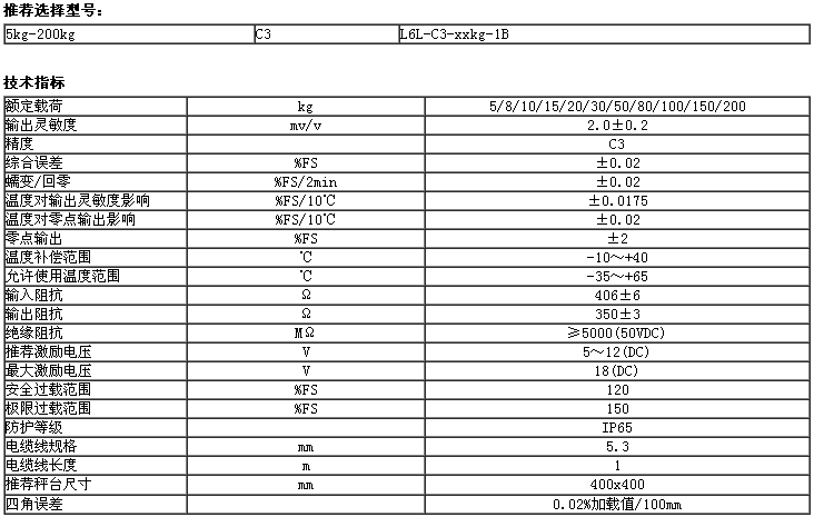 ★L(fēng)6L-C3-80KG可滿足3kg-50kg 量程范圍內(nèi)的測(cè)量。