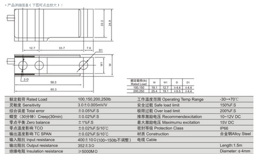 產(chǎn)品品牌:美國(guó)(MKcells)柯力稱重傳感器MBB-200LB