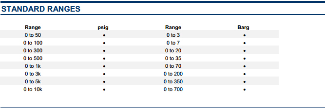 美國MEAS壓力傳感器MSP340范圍參考圖: