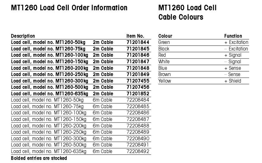 METTLER TOLEDO MT1260-635kg傳感器6米線長: