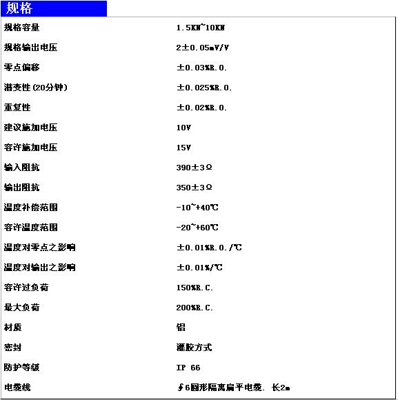 允許過(guò)載:~0.05%RO1mV/ V,100Nは1.5mV/ V)~0.05%RO