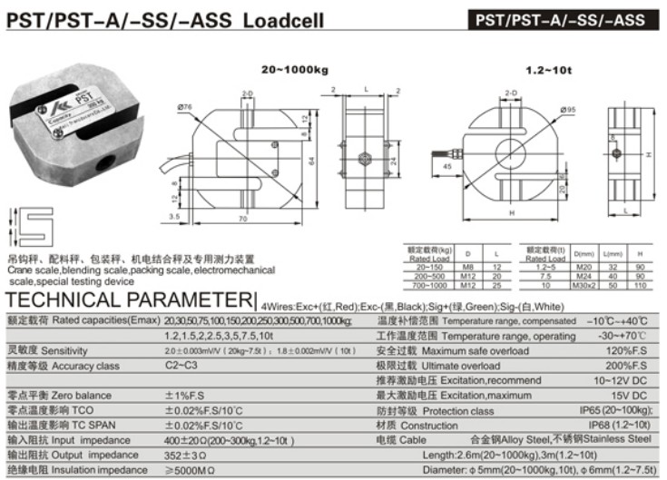 PST-200KG為高精度的S型傳感器,采用密封式外殼設(shè)計(jì),防護(hù)等級為IP68.工作溫度范圍-30'C- 70℃,可應(yīng)用于多種工業(yè)環(huán)境.