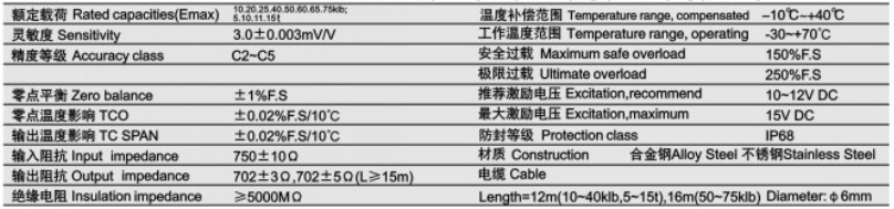 QSB-A-50klb傳感器技術(shù)參數(shù):