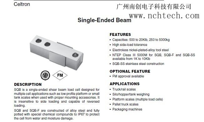 Celtron SQB單端梁稱重傳感器是高負(fù)荷量程