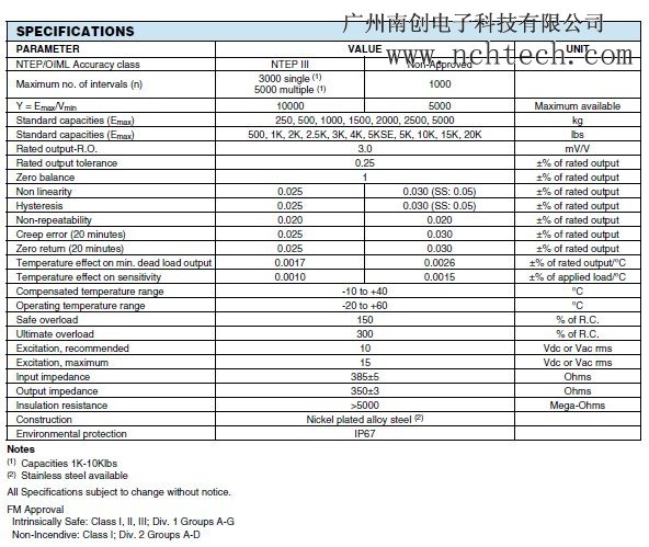 世銓Celtron稱重傳感器SQB-2000KG產(chǎn)品參數(shù):