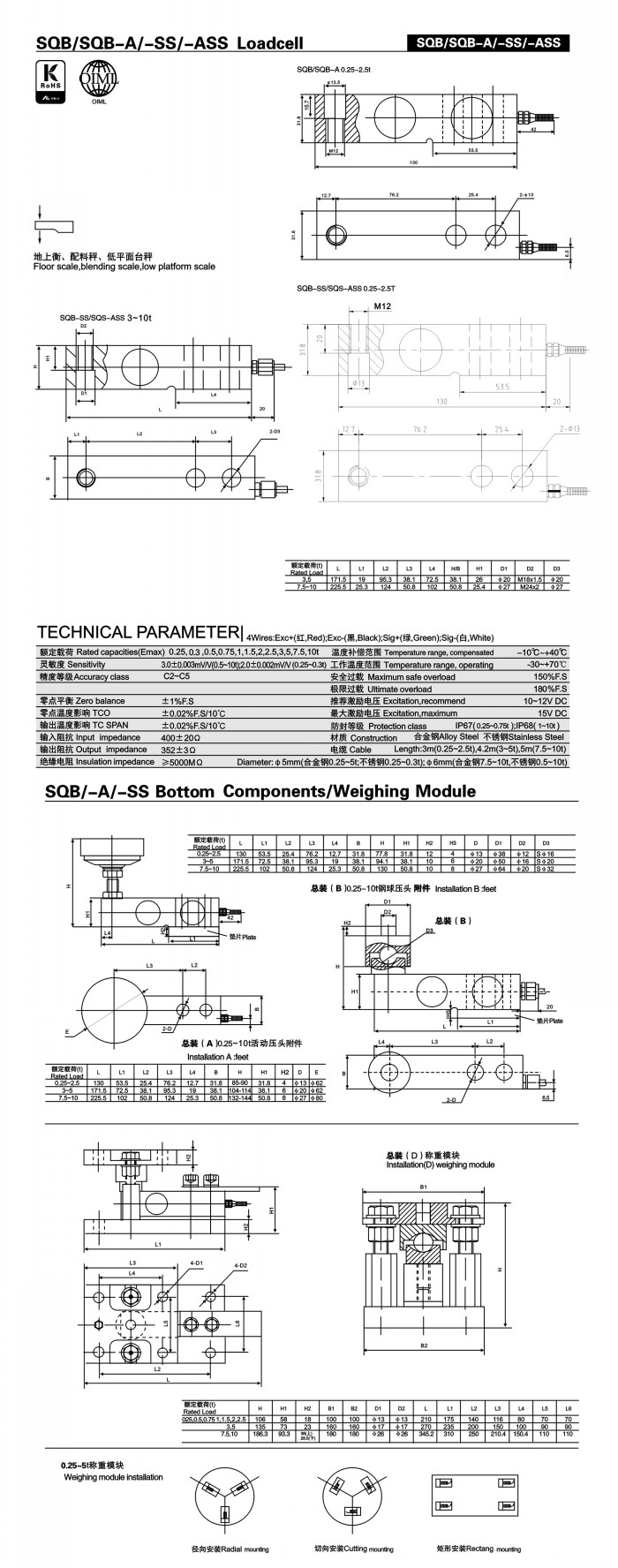 想了解更多SQB系列傳感器可以點(diǎn)擊:amcells稱重傳感器;可查找SQB-250KG傳感器系列型號(hào)了解具體技術(shù)參數(shù)及相關(guān)系列產(chǎn)品型號(hào)等信息。