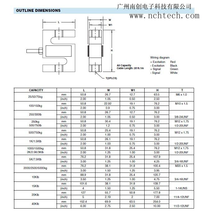 美國世銓Celtron稱重傳感器結(jié)構(gòu)技術(shù)參數(shù):
