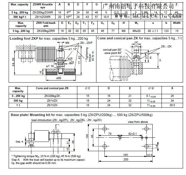 Z6FC3/20KG Z6FC3/50KG Z6FC3/100KG Z6FC3/200KG Z6FC3/500KG Z6GC3/500KG Z6FC3/1T
