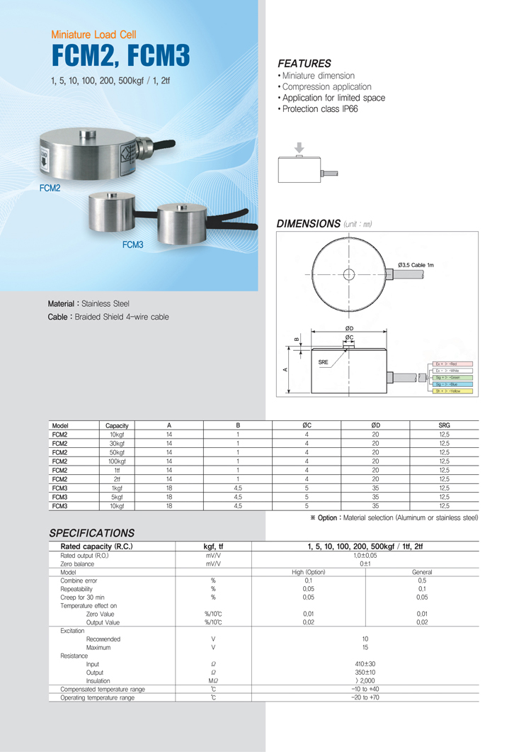 韓國Fine FCM2-100KG稱重傳感器所有量程: