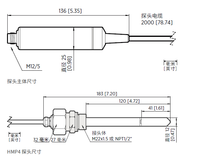 探頭連接裝置包括:M22x1.5 和 NPT1/2” 接頭