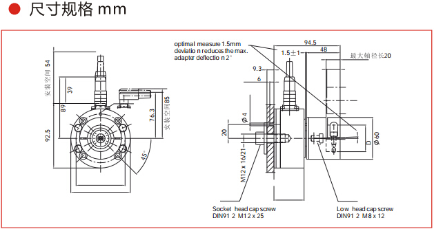 瑞士FMS CA203張力傳感器尺寸規(guī)格圖: