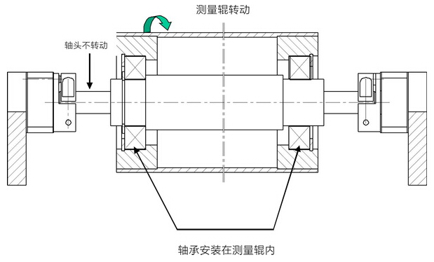 。測量輥的軸頭不轉(zhuǎn)動,傳感器提供軸接頭;