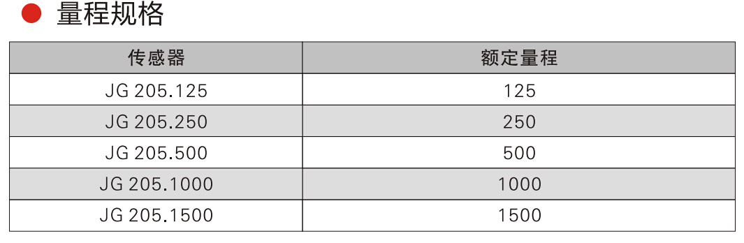瑞士FMS JG205系列張力傳感器的其他量程規(guī)格: