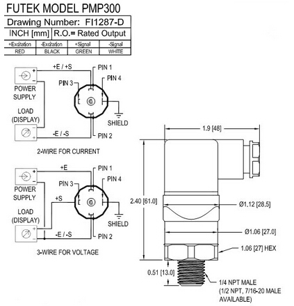 美國Futek PMP300壓力傳感器尺寸參考圖: