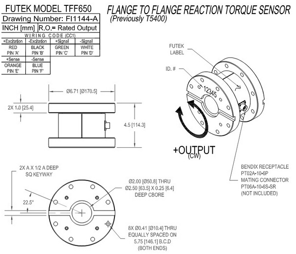 美國(guó)FUTEK TFF650扭矩傳感器尺寸圖: