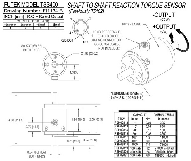 美國FUTEK TSS400扭矩傳感器尺寸圖:
