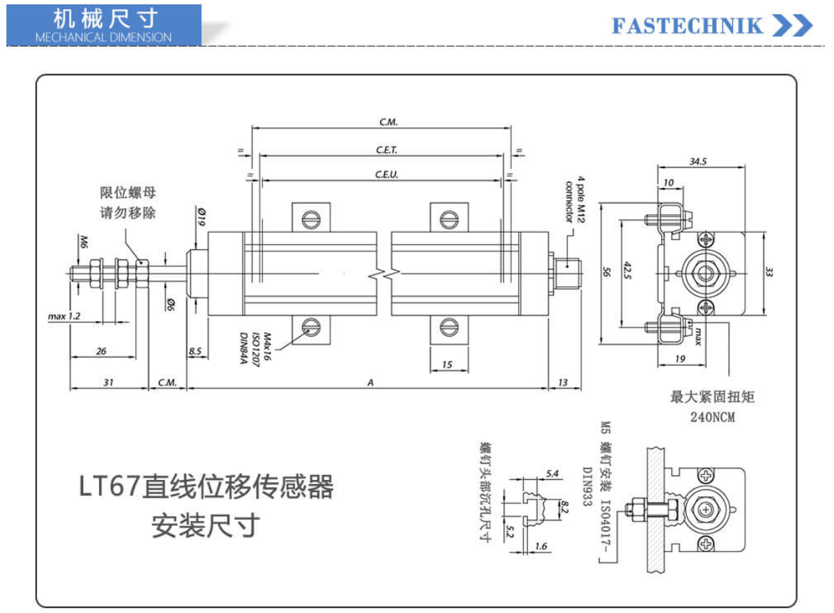 oyN廣州南創(chuàng)電子科技有限公司杰佛倫gefran電子尺LT-M-0400-P-XL0322 LT-M-0550-P-XL0322尺寸圖:oyN廣州南創(chuàng)電子科技有限公司