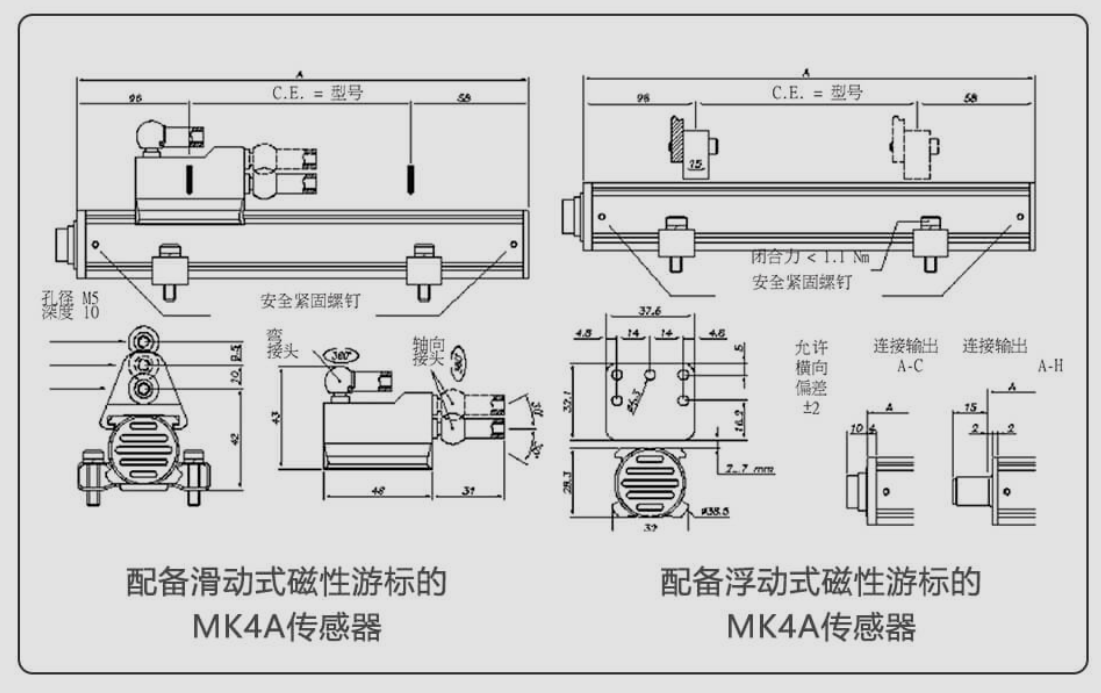 U2r廣州南創(chuàng)電子科技有限公司杰佛倫gefran電子尺M(jìn)K4-A-A-1000-N MK4-A-B-150-E尺寸圖:U2r廣州南創(chuàng)電子科技有限公司