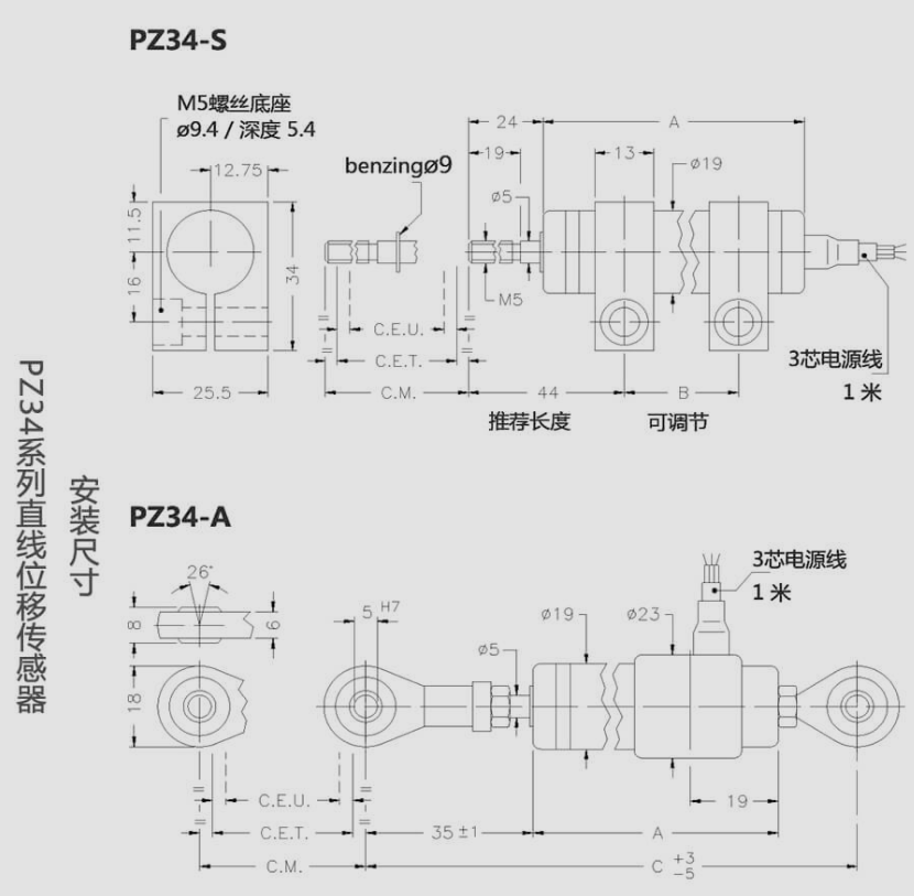 iIb廣州南創(chuàng)電子科技有限公司杰佛倫gefran電子尺PZ-34-A-150 PZ-34-S-050尺寸圖:iIb廣州南創(chuàng)電子科技有限公司
