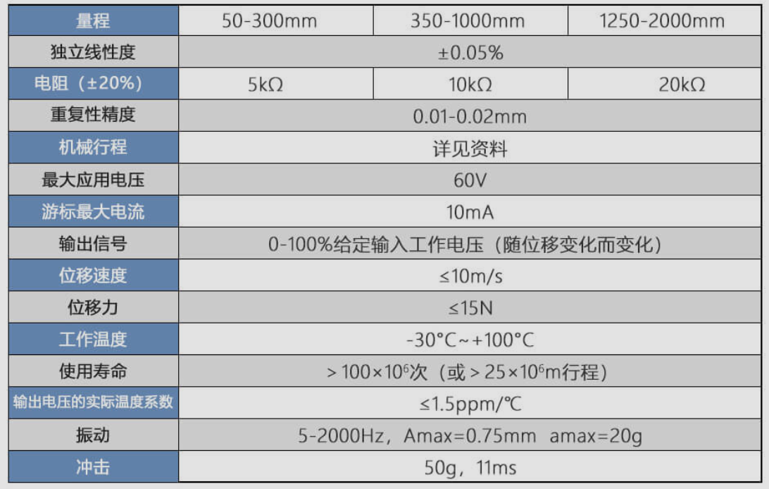 qPP廣州南創(chuàng)電子科技有限公司杰佛倫圓柱型位移傳感器PC-M-0275 PC-M-0300相關(guān)特點: qPP廣州南創(chuàng)電子科技有限公司PC直線位移傳感器(別名:電子尺,電阻尺,電位器,位移傳感器)原理:電位計原理,使用 2 個球節(jié)的機械固定和自對準(zhǔn)連桿,最大角運動達 ± 30°,獨立線性度 ± 0.05%,可重復(fù)性 0.01 毫米,無限分辨率。超出理論電氣行程后無電氣信號輸出變化安裝更簡單。輸出直流電壓信號,也可以通過內(nèi)置或者外置的變送模塊講信號轉(zhuǎn)換成標(biāo)準(zhǔn)的0-5V、0-10V或者4-20mA直流信號,也可以遠距離傳輸控制要求。適用于各種高機械強度場合的位移測量。
