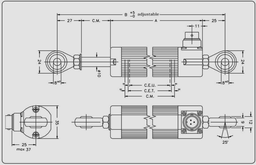 qPP廣州南創(chuàng)電子科技有限公司杰佛倫gefran電子尺PC-M-0275 PC-M-0300尺寸圖:qPP廣州南創(chuàng)電子科技有限公司